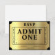 Golden Ticket Black & Gold Wedding RSVP Karte