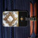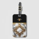 Ein nahes, goldfarbenes Design auf weißem Marmorboden.