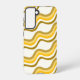 A rhythmic pattern of Golden Waves on nearly white ground. 70s Vintage Style.