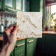 Tauchen Sie ein in ein stilvolles Whirlpool mit unseren Golden Whirl Imitate Marmorfliesen Print, eine künstlerische Mischung aus cremigen Weißen und fesselnden goldenen Farbtönen, vermischt in ein dynamisches Fließmuster. Dieser faszinierende Druck kanalisiert die Bewegung von umgerührtem Flüssiggold und bietet eine abstrakte und zeitgenössische Ästhetik. Dieser Ausdruck ist ideal, um jedem Raum eine Aussage hinzuzufügen. Er verleiht Ihrem Zuhause die Illusion von Marmoreleganz und Goldopulenz ohne die hohen Materialkosten. Mit diesem kühlen und modernen Akzent auf klassische Elemente verwandeln Sie Ihren Raum.