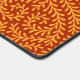 Seamless repeating pattern featuring stylized golden yellow leafy vine motifs against a rich terracotta red background.