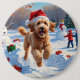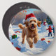 Goldendoodle läuft im Schnee mit Weihnachtshut Button