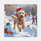 Ein flauschiger Goldendoodle läuft spielerisch durch die schneebedeckte Winterszene und trägt einen festlichen roten Weihnachtshut. Dieses lebendige Design hebt das frische Fell der Rasse, die liebevolle Natur und die fröhliche Persönlichkeit hervor und erweckt den fröhlichen Geist der Urlaubssaison. Ein herzlicher Wintergenuss voller festlichen Charme.