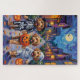 Adorable Goldendoodles, die in verspielten Halloweenkostümen gekleidet sind, tragen Kürbiseimer, während sie unter dem mondbeleuchteten Himmel tricksen oder behandeln. Dieses festliche Design hebt die flauschigen Züchterrollen, das fröhliche Gesicht und die spielerische Persönlichkeit hervor, die perfekt die sprichwörtliche und dennoch lustige Atmosphäre Halloween-Abends einfangen. Ein herzliches Fest für Hundefreunde und Halloween-Fans gleichermaßen.