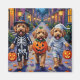 Adorable Goldendoodles, die in verspielten Halloweenkostümen gekleidet sind, tragen Kürbiseimer, während sie unter dem mondbeleuchteten Himmel tricksen oder behandeln. Dieses festliche Design hebt die flauschigen Züchterrollen, das fröhliche Gesicht und die spielerische Persönlichkeit hervor, die perfekt die sprichwörtliche und dennoch lustige Atmosphäre Halloween-Abends einfangen. Ein herzliches Fest für Hundefreunde und Halloween-Fans gleichermaßen.