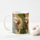 Diese niedliche Welpen-Tasse mit Golden Doodle verfügt über ein hübsches Foto eines Golden Doodle Hundes, der im Park spielt. Fügen Sie Ihre eigene benutzerdefinierte Nachricht hinzu, um dieses Design zu Ihrem eigenen zu machen. Fotografie erstellt von der preisgekrönten Fotografin Maria Jeffs.
