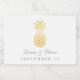 Tropische Ananas Gold Wedding Labels mit einer Ananas Vorderseite und Mitte mit dem Namen des Paares und Datum unten in elegantem kohlegrauen Schriftart.
