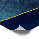 Eine abstrakte Landschaft mit einzigartigen Farben und Texturen, die eine nächtliche Bergszene mit den leuchtenden Lichtern der Bergsteiger und einem Mond in den Farben Blau, Gold, Cyan und Gelb zeigt.