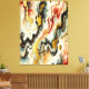 Ein abstraktes Gemälde mit goldenen Flüssen, die sich durch die Farben Weiß, Rot, Blau und Schwarz schlängeln. Die dynamischen Muster entstehen durch die Technik des Fluid Paintings.