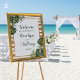 Feiern Sie stilvoll mit diesem stilvollen und sehr trendigen Begrüßungszeichen. Das Design besticht durch einen schicken, gestreiften Hintergrund mit goldfarbenen und weißen Folieneffekten, tropischen Palmen-Blätter und passenden Formulierungen in grüner Farbe.. atemberaubend und perfekt für alle, die eine Hochzeitsfeier zu einem Ziel oder zum Thema Strand planen. Das Design lässt sich leicht mit Ihrer speziellen Veranstaltungssprache personalisieren und Ihre Gäste werden begeistert sein, wenn sie dieses fabelhafte Schild sehen.