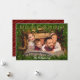 Eine attraktive und auffällige Weihnachtskarte mit Ihrem familiären Foto, hervorgehoben durch einen Rahmen von Weihnachtsbäumen Zweigen. Goldbrunnen Frohe Weihnachten an der Spitze und Ihre Namen in der Nähe des unteren. Die Rückseite zeigt ein sich wiederholendes Muster des Goldes Frohe Weihnachten gegen ein dunkles Rot.