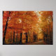 Gelbe goldene Herbstbäume entlang einer schmutzigen Straße.