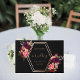 Ein schwarzer Hintergrund, Rose goldener Folientext. Sie sind mit geometrischen Rahmen und Blumenarten in Bordeaux und Rosa dekoriert. Personalisieren und fügen Sie Ihre Namen und das Hochzeitstermin.