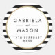 Die eleganten Hochzeitsaufkleber mit klassischem Schwarz-Weiß-Streifen zeichnen sich durch eine elegante Goldfolie aus Imitat aus, die Ihre Namen und das besondere Date Set in schicker Typografie umrahmt. Entwickelt von Thisisnotme©