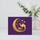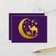 Feiern Sie Eid im Stil mit dieser Postkarte mit goldenen Kamelen auf einer dunklen lila Basis, die mit einem Halbmond und funkelnden Sternen besticht. Die von Alma Wad entworfene, elegante, in arabischen Nächten inspirierte Postkarte eignet sich hervorragend, um Eid Segen mit Angehörigen, Kollegen oder Kunden auf einzigartige und raffinierte Weise zu teilen.