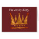 Goldene Krone auf roter Hintergrundpostkarte. Elegante Postkarte für verschiedene Gelegenheiten. Addieren Sie Ihren eigenen Text.