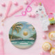 Tauchen Sie ein in ein fantastisches tropisches Paradies, in dem das goldene Licht der Sonne die Welt verändert. Dieses skurrile Kunstwerk vereint eine ruhige Strandlandschaft, in der der Sand mit einem weichen, warmen Licht glänzt. Hochwertige Palmen und majestätische Klippen sind nicht nur Silhouetten gegen den Himmel, sondern werden in reinem Gold gehalten, was die strahlende Brillanz der Sonne widerspiegelt. Das Wasser klettert sanft am Ufer und lädt Sie ein, in eine Welt der reinen Fantasie zu treten und zu entkommen.