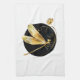 Künstlerisch bemalt, Gold, Schmuck, funkelnde Libelle mit detailreichen filigranen Flügeln auf goldener wilder Blume, gegen schwarz strukturierte Kreis. Goldene Libelle
