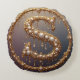 Luxuriöses goldenes Monogramm, verziert mit Perlen, Diamanten und aufwendiger barocker Filigranarbeit in einem runden dekorativen Rahmen; elegantes, königliches und sehr detailliertes Design für die Verwendung in Marken oder Redaktionen.