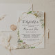 Diese geometrisch goldene Pony-Nacht vor der Probe-Dinner-Einladung ist perfekt für ein modernes Event. Das Design besticht durch hübsche, von Hand gezeichnet, weiße Bäuche, die in hübsche Bouquets mit bordeauxfarbenen Buds und grünen Blätter eingefasst sind.