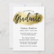 Einladung zur Graduation Party mit einem schönen schwarzen Skript und einem goldfarbenen Pinselstrich. Die Rückseite weist ein passendes Pollka-Punktmuster aus Gold und Weiß auf.