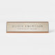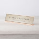 Die elegante Schreibtisch-Typenschild ist mit klassischen schwarzen Schriftzeichen auf goldfarbenem, mit goldfarbenem Hintergrund dekoriert und mit Litzen von Imitaten mit goldenen Blattsilber verziert. Personalisieren Sie Ihre persönlichen Daten mit Ihrem Namen, Titel oder Firmennamen.