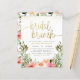 Diese Brautbrunch-Einladung bietet eine Anordnung von Aquarellfarben-Blume in Rosa und Weiß in rustikalen Gärten. "Bridal brunch" ist in der modernen Skriptkalligraphie geschrieben, mit Wirbel an beiden Enden, die den Rand des Einladens erreichen. Ihre Duschdetails erscheinen unten in einfacher Typografie. Im Rahmen der Budgetauswahl hier auf Zazzle kommen diese Einladungen nicht mit Umschlägen und passen nicht perfekt in einen Standard-Umschlag. Die nahe Größe ist A6, aber es gäbe eine Lücke von ca. 10 cm. Wenn es Ihnen nichts ausmacht, können Sie so weit verfügbare A6-Umschläge verwenden. Andernfalls kann dieses Design über das Design Transfer Tool in ein Standardformat (das mit Umschlägen geliefert wird) übertragen werden.