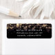 Chic Rücksendeadressen-Aufkleber in knuspriger Schwarz haben einen oberen Rand von goldfarbenen, leuchtenden Saitenlichtern mit einem verschwommenen Bokkeh-Effekt. Personalisieren Sie mit Ihrer Rücksendeadresse in modernem Weißblock und kursiven Schriften.