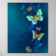 Goldene Schmetterlinge auf blauem Hintergrund Poster