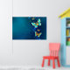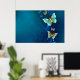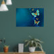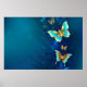 Goldene Schmetterlinge auf blauem Hintergrund Poster