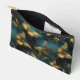 Ein eleganter kleiner Accessoires-Beutel mit Schmetterlingsmuster in glitzernden goldenen Farbtönen und leuchtender Blues.