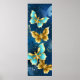 Zusammensetzung aus Fliegen, Schmuck, Gold und dunklen Schmetterlingen auf texturiertem Schmuckhintergrund. Goldener Schmetterling.