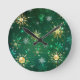 Goldene Schneeflocken im grünen Hintergrund Runde Wanduhr