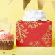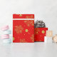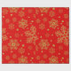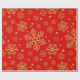 Weihnachtsdesign mit goldenen Schneeflocken und Sternen auf rotem Hintergrund