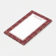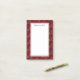 Sticky Noten mit einem sich wiederholenden Muster von extravaganten goldenen Schneeflocken mit eleganten kristallinen Formen. Ein dunkelroter Hintergrund.