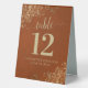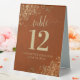 Goldene Spitzen auf der Rust Orange Hochzeitsfeier Tischaufsteller