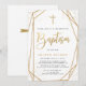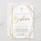 Der moderne, elegante Junge Baptism lädt mit handgeschriebener Schrift ''Taufe'' in Goldschrift , Goldrahmen , Goldkreuz auf einem weißen Untergrund ein. Persönlich mit Details in trendiger Hauptstadt-Schrift.