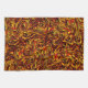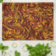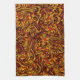 Bild mit gelben Kurven und lebhaften roten Flecken, die goldenen und texturierten Wandmalereien ähneln.