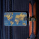 © Albena Hristova/wildes Apple. GoldWeltkarte mit blauem Hintergrund