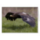 Ein goldener Adler schlüpft tief, mit Kopf gefangen im Profil gegen den dunklen Flügel.