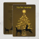Diese bezaubernde Hochzeitseinladung beinhaltet ein Silhouette-Reh-Paar vor einem goldfarbenen Weihnachtsbaum im Winter. ~