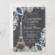 Goldener Eiffelturm, Blume, Schwarzquinceñera Einladung