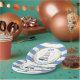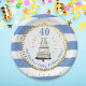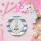Feiern Sie das Geburtstagsmädchen stilvoll mit diesen lustigen und festlichen Tellern mit einem blau-weiß gestreiften Muster, das mit den Imitaten goldenen Glitzer Konfetti Punkte und einem von der Hand gezeichneten Geburtstagskuchen akzentriert ist. Fügen Sie ihr Alter, ihren Namen und den benutzerdefinierten Text hinzu.