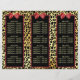 Ein glamouröser Friseursalon dreimal so teuer wie ein Flyer mit einer Goldkrone. Der Hintergrund ist mit einem schicken Leopardenprint in Schwarz und Gold und einem gürtelroten Bogen geschmückt. Flachbild, NICHT metallisch.