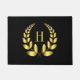 Goldenes Lorbeerkranz-Set auf massivem Schwarz. Personalisieren Sie Ihre Initalien oder Monogramm in goldgelben Schriftart.