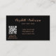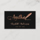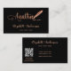 Eine elegante Visitenkarte auf schwarzem Hintergrund und eine goldene Feder in der Rose. Elegantes handgeschriebenes Stilskript. Personalisieren Sie Ihren Namen, Titel, Kontaktdaten und Ihren eigenen QR-Code und fügen Sie ihn Ihrer Website-Adresse hinzu.