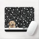 Golden Retriever auf schwarz-weiß Blumenmuster mit Namen. Der Name ist bearbeitbar oder kann gelöscht werden.