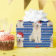 Goldener Retriever auf dem Glitzer Streifen Geschenkpapier