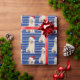 Weihnachten goldener Retriever auf Gold und Silberstreifen mit blauem Hintergrund.