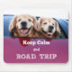 Dieses mousepad kennzeichnet eine Fotografie von zwei Hunden des goldenen Retrievers mit ihren Köpfen, die heraus ein Autofenster, zusammen mit dem Text schauen, "behalten Ruhe und Straßen-Reise."